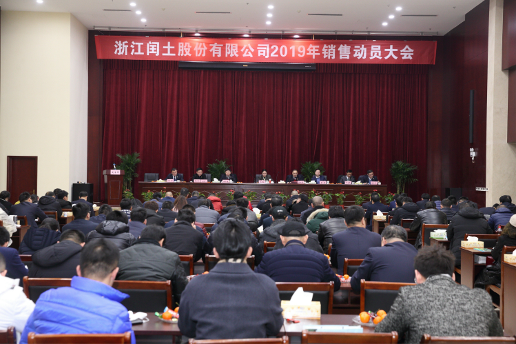 2月12日,閏土股份2019年銷售動員大會在閏土生態(tài)工業(yè)園隆重召開。阮靜波董事長攜公司高層領(lǐng)導出席會議。本次大會旨在對公司2018年的營銷工作進行了全面總結(jié),提出了2019年新的銷量目標,號召全體銷售工作人員勵精圖治、不斷進取奮斗,全面提升銷售團隊的戰(zhàn)斗力。