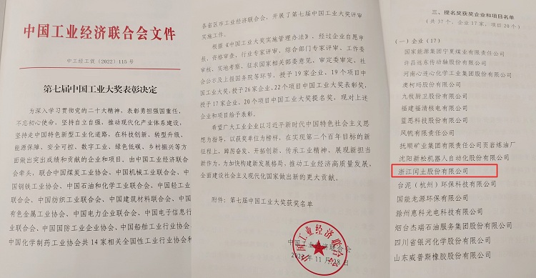 第七屆中國工業大獎發布 閏土股份榮獲中國工業大獎提名獎