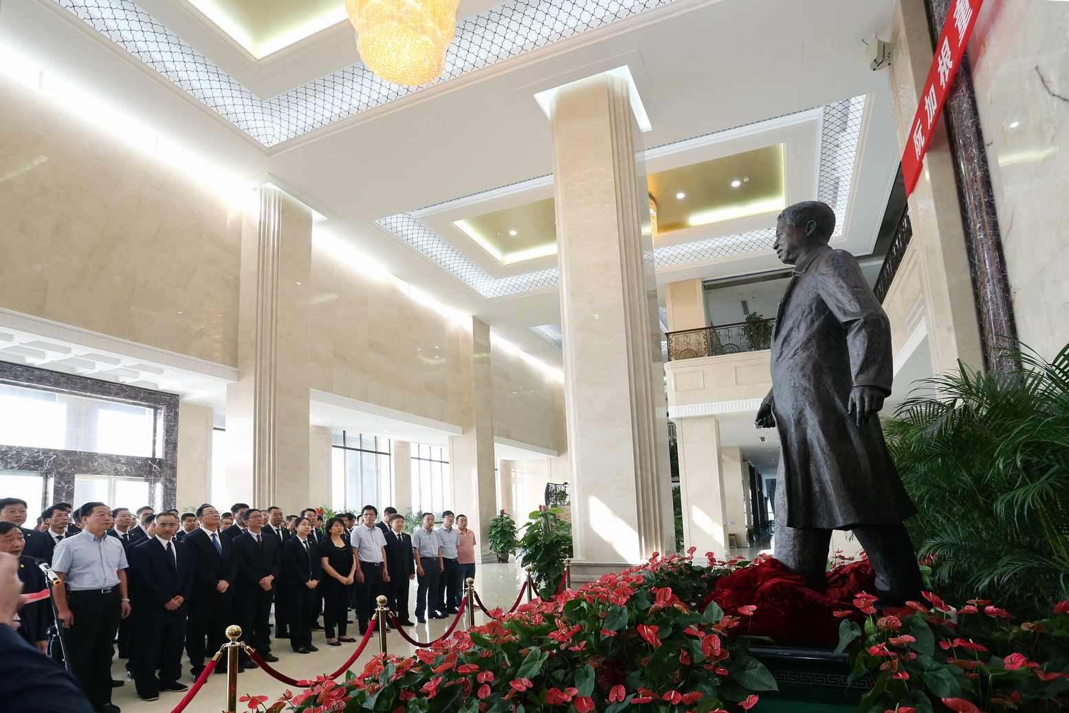阮加根董事長銅像揭幕儀式在閏土生態(tài)工業(yè)園科技大樓內(nèi)舉行